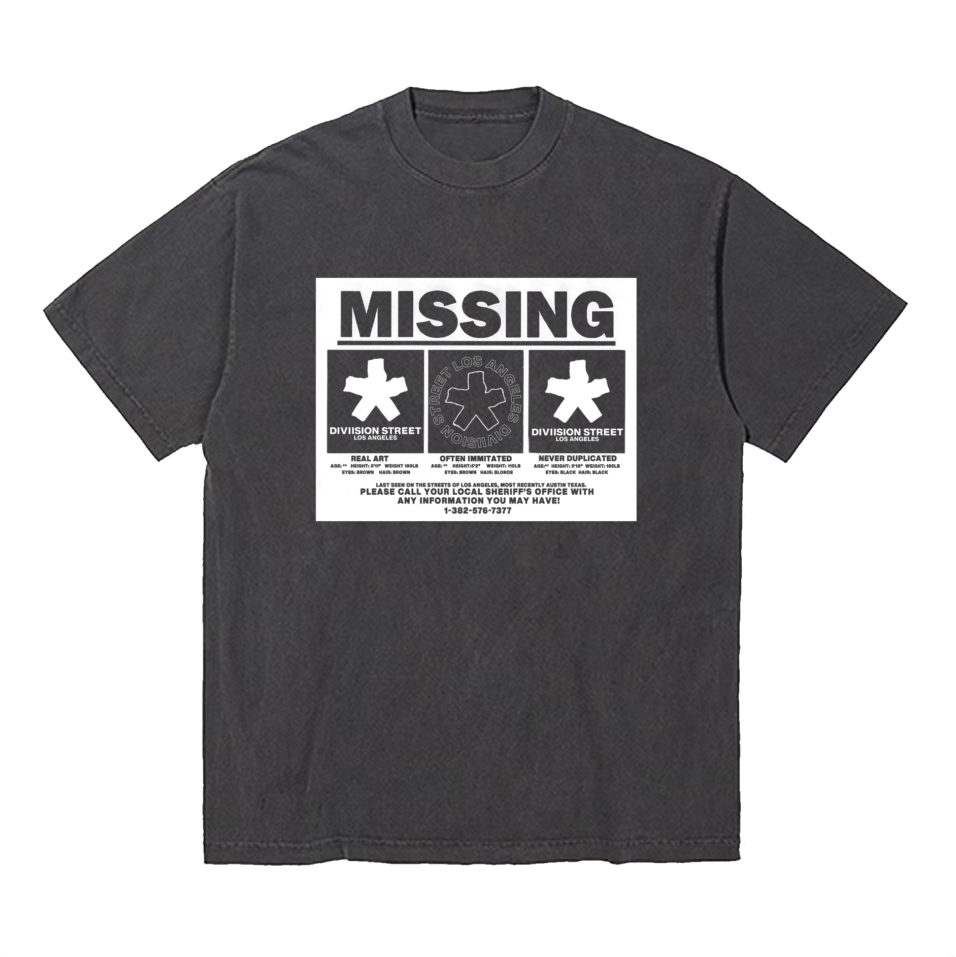 THE 'MISSING' T IS PRINTED ON A HIGH QUALITY 100% COTTON T SHIRT MADE IN THE USA