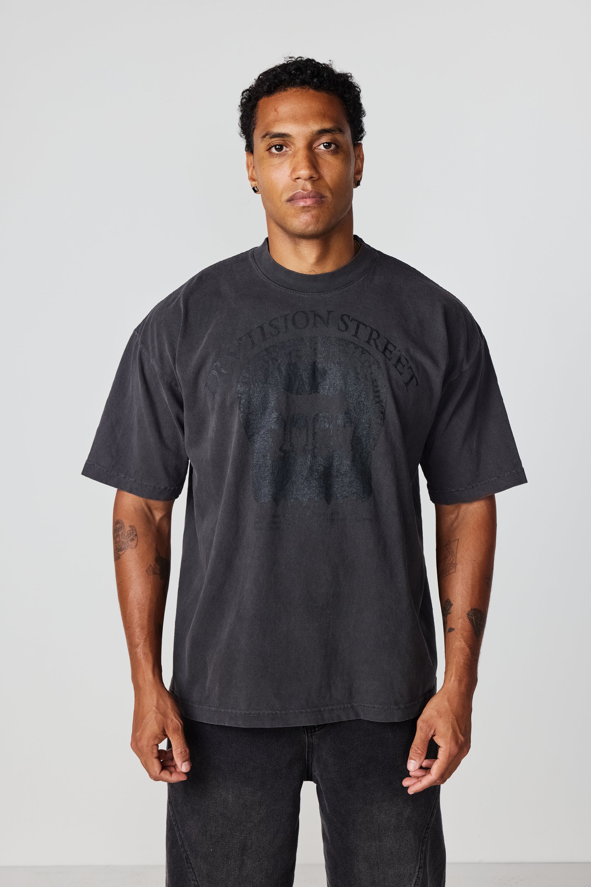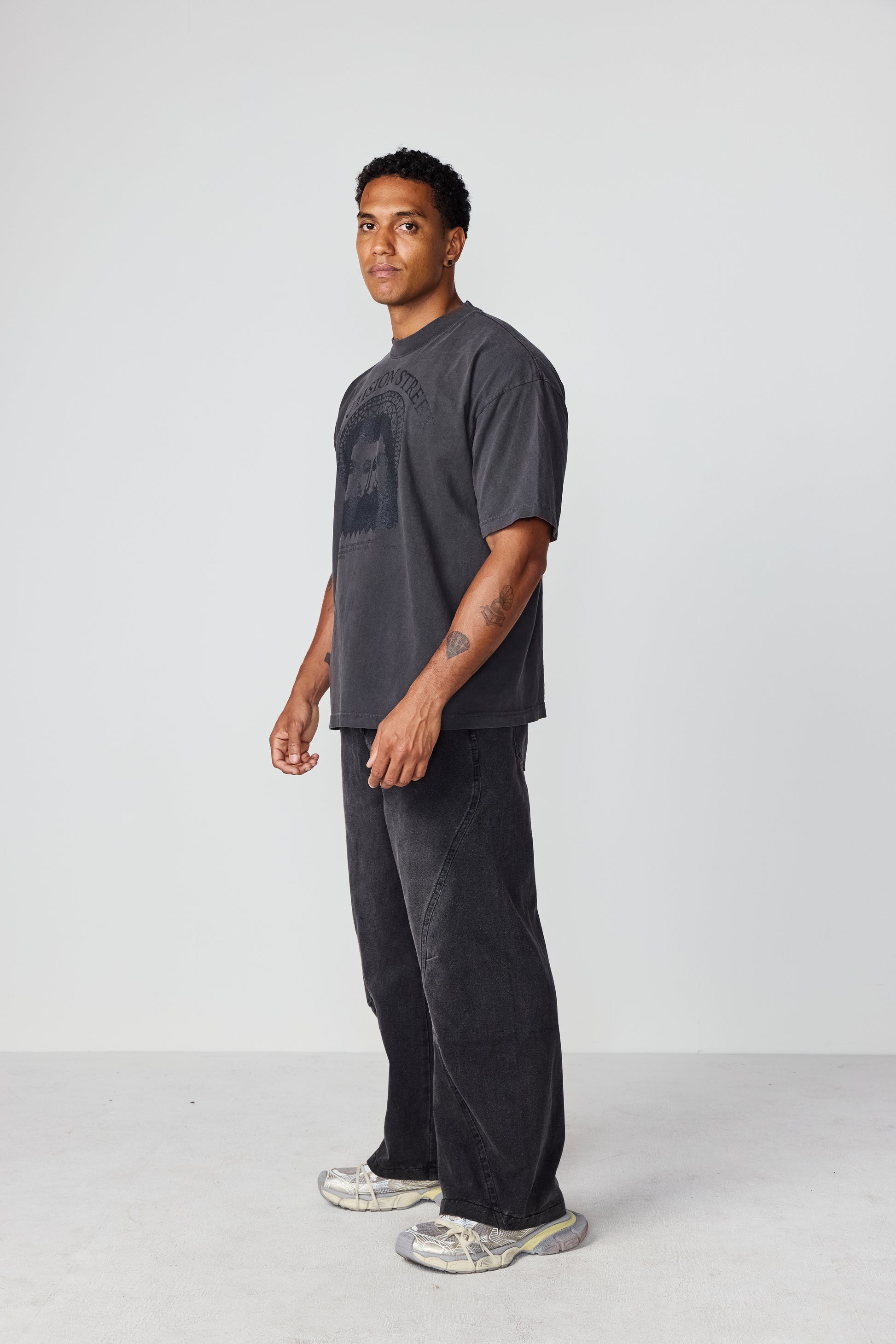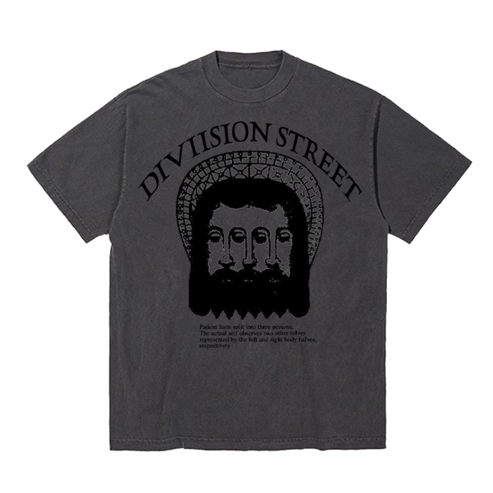 THE '3 PERSONS' T IS PRINTED ON A HIGH QUALITY VINTAGE WASHED 100% COTTON BLACK T SHIRT MADE IN THE USA