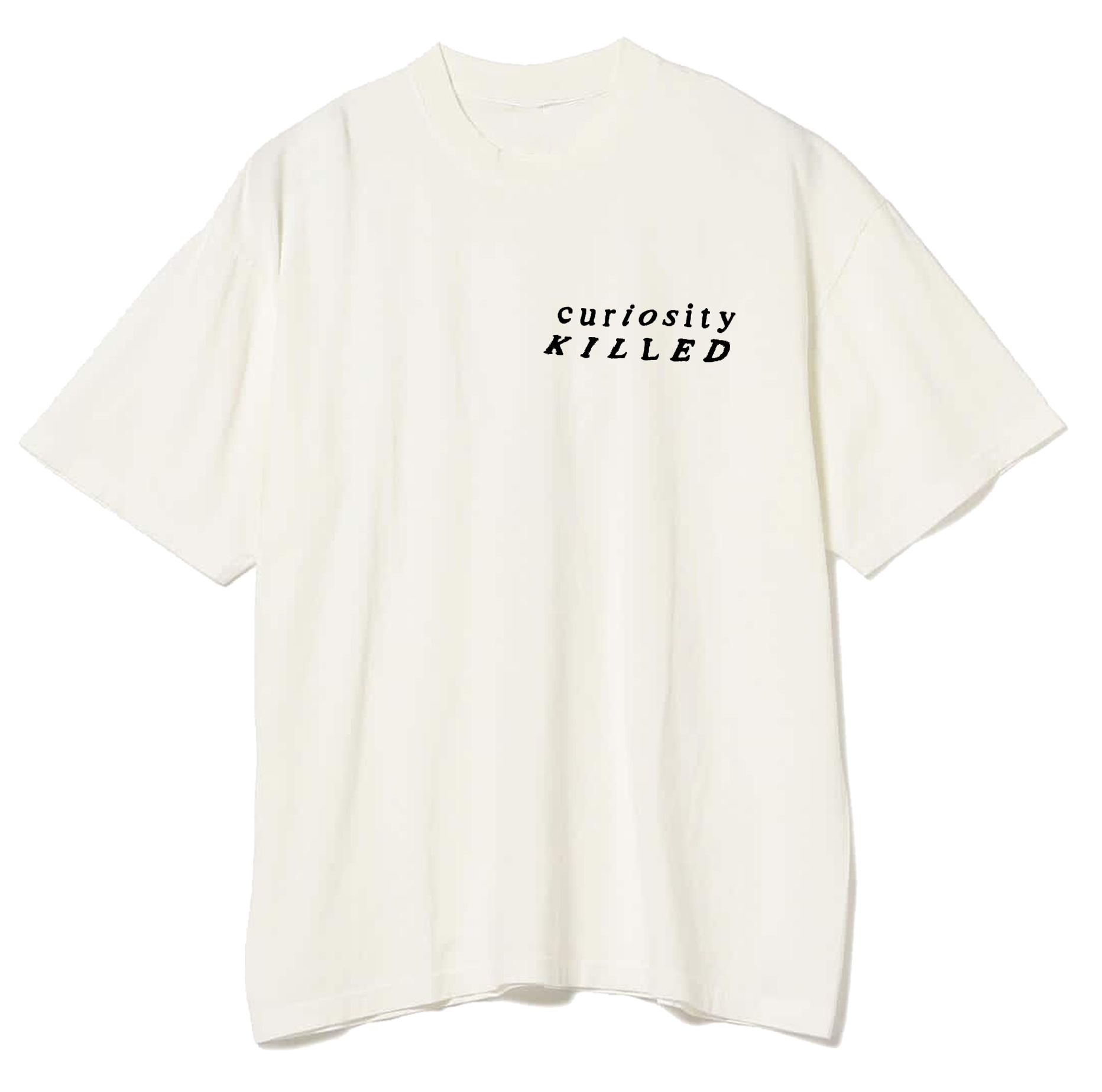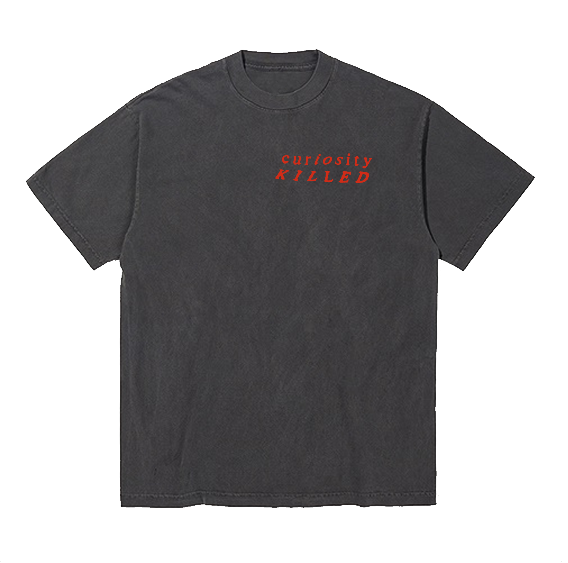 THE 'CURIOSITY' T IS PRINTED ON A HIGH QUALITY VINTAGE WASHED 100% COTTON BLACK T SHIRT MADE IN THE USA